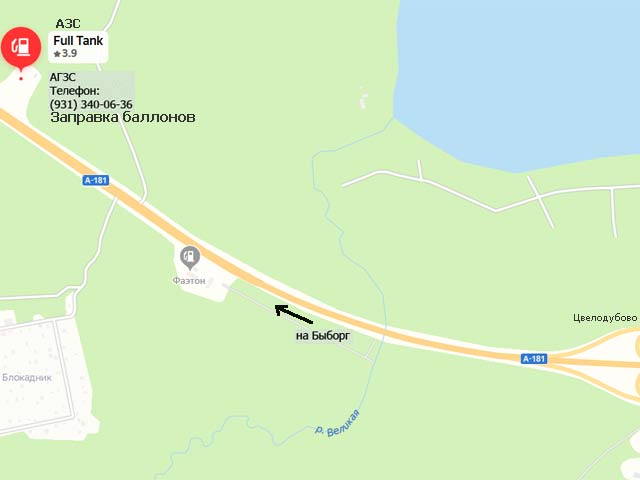 Ленинградская обл., трасса «Скандинавия» 84 км, тел. +7-931-340-06-36. Заправка бытовых газовых баллонов пропан-бутаном, заправка по картам «Петрол», скидки корпоративным и частным клиентам. «Full Tank». Отдел продаж (812)438-30-23